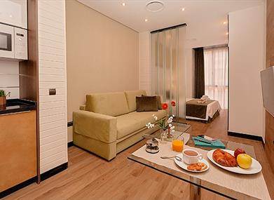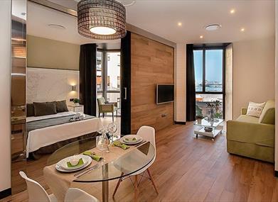 Cuentan con Estudios, Apartamentos de 1 dormitorio y Áticos con terraza privada, todos ellos con cocina completa y totalmente equipados.