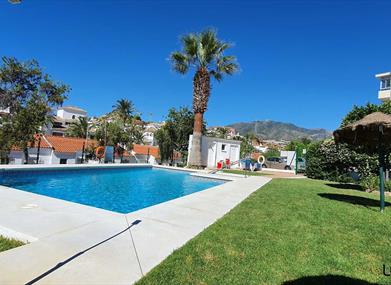Die Touristenunterkunft befindet sich in einer sehr ruhigen Gegend innerhalb einer kleinen, ungemein gemütlichen Anlage mit nur 24 Ferienapartments, die ihren Gästen einen gemeinschaftlich genutzten Salzwasser-Pool, Grünzonen sowie Parkplätze bietet. Die Touristenunterkunft verfügt über einen eigenen Garten mit herrlichem Panoramablick auf die Sierra de Benalmádena und Mijas. Genießen Sie diese Oase der Ruhe und Harmonie.