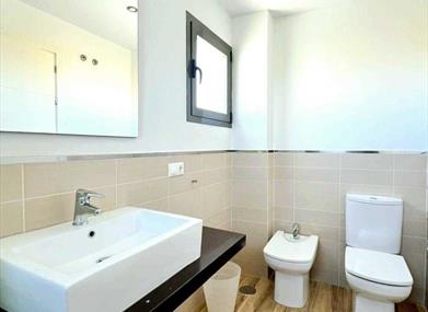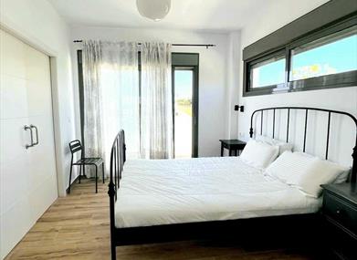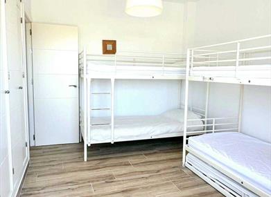 Im ersten Stock gibt es eine Suite mit einem kompletten Badezimmer und einem großen Ankleidezimmer, ein Zimmer mit einem gemischten Etagenbett (Doppel- und Einzelbett) und ein weiteres Zimmer mit zwei Etagenbetten und einem Zusatzbett (insgesamt 5 Betten). Alle drei Zimmer verfügen über große Fenster, die auf dieselbe Terrasse führen, von der aus Sie das Meer sehen können.