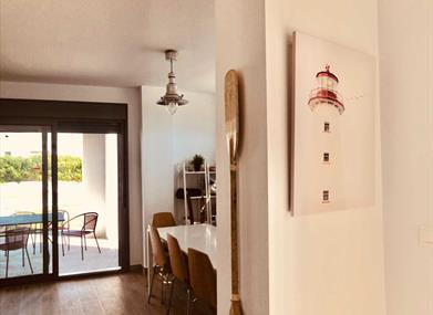 Die Vivienda Turística Villa Saloma verfügt im Erdgeschoss über ein Wohn-Esszimmer mit großen Fenstern mit Blick auf die Veranda und den Swimmingpool, eine Küche mit Zugang zur Veranda, eine Speisekammer, ein Badezimmer mit Dusche und ein Schlafzimmer mit Doppelbett und Zugang zum hinteren Teil des Gartens.