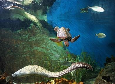 In der Anlage gibt es etwa 3.000 Exemplare von 270 verschiedenen Arten. Hervorzuheben sind unter anderem die eindrucksvollen Grauen Riffhaie und Sandtigerhaie, die Seepferdchen und Quallen.