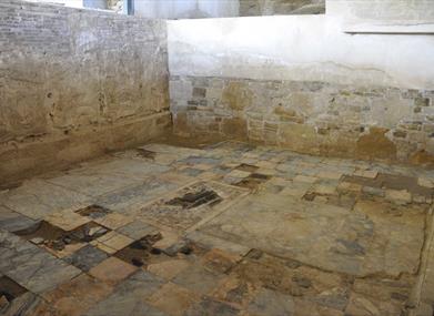 Erwähnenswert sind auch verschiedene römische Räume, die mit wunderbaren Marmorböden (Opus sectile) und originalen Wandmalereien verziert sind.