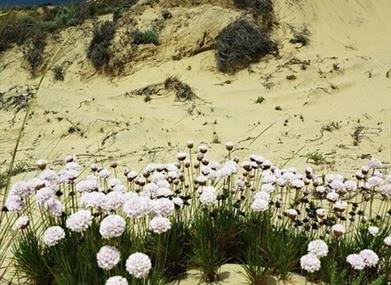 In den Dünen, die sie befestigen, und an der Küste wachsen Pflanzen, die eine größere Trockenheit und stärkeren Wind, Sand und Salz vertragen. Diese Landschaften werden als „bosques despeinados“ (zerzauste Wälder) bezeichnet. Diese Pflanzen sind Krähenbeere, Sadebaum, Totenblume und Strandhafer.