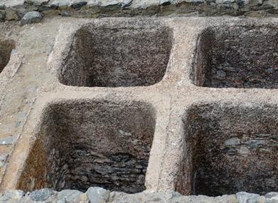 Der mittlere Bereich bildet den Hauptkern der Fabrik. Hier befinden sich die Pökelbecken, in denen Fischfilet eingelegt und jeweils mit einer Schicht Salz überzogen wurden. Nach 21 Tagen wurde der bereits gesalzene Fisch in große Amphoren getan, um ihn zu transportieren und im gesamten Mittelmeerraum, vor allem in den Städten Karthago, Rom und Korinth, zu verkaufen.