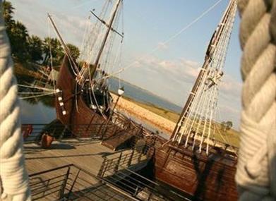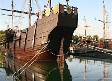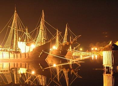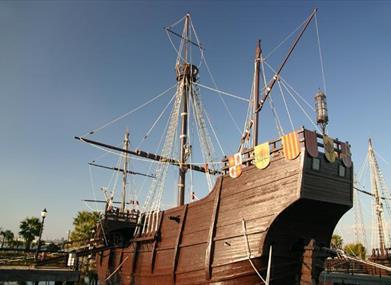 Neben den Nachbildungen der Schiffe, seinen touristischen Hauptattraktion, besitzt das Museum Muelle de las Carabelas ein Informationszentrum, den mittelalterlichen Stadtteil (nachgebaut um das Hafenbecken) und die Isla del Encuentro (Insel der Begegnung), auf der versucht wurde, die indigene Kultur der Insel Guanahani darzustellen. Sie ist die erste Insel, auf der Christph Kolumbus am 12. Oktober 1492 landete und die er auf den Namen San Salvador taufte.