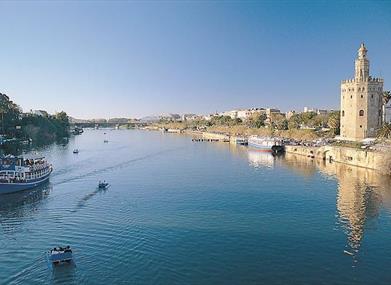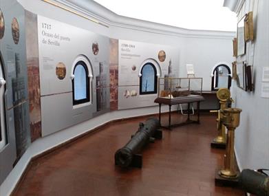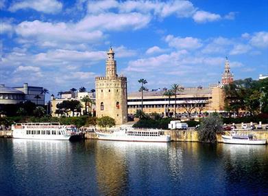Der Goldturm - Schifffahrtsmuseum von Sevilla ist ein Verteidigungsturm aus dem 13. Jahrhundert, von dem aus einst ein dicke Kette bis ans andere Ufer des Flusses gespannt wurde, um so feindlichen Schiffen den Weg abzuschneiden.