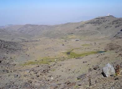 Wenn man vom Norden, vom Tal von Granada aus auf das Gebirgsmassiv blickt, sieht man am Horizont ein Relief aus abgerundeten Berggipfeln, an denen man die Spuren der eiszeitlichen Erosion aus der Quartärzeit erkennen kann, der südlichsten auf dem europäischen Kontinent. In diesen Bergen befindet sich eine einzigartige und spektakuläre Landschaft in U-Form, mit Karen, Lagunen, seitlichen Moränen und Bergkämmen, wie beispielsweise die Laguna de la Caldera. Dies ist das Gebiet des (fast) ewigen Schnees, dort, wo am Ende des Frühjahrs mit der Schneeschmelze die vielen bekannten Heilquellen und Kurbäder gespeist werden, wie beispielsweise das Lanjarón, ebenso wie das weitläufige, riesige und historische Netz von Wasserläufen, das sich durch das Gebiet La Alpujarra zieht, oder auch die unendlich vielen Flüsse und Bäche, die mit ihrem Wasser den östlichen Teil von Andalusien versorgen, wie der Genil, der Andarax, der Guadalfeo oder der Guadiana Menor.