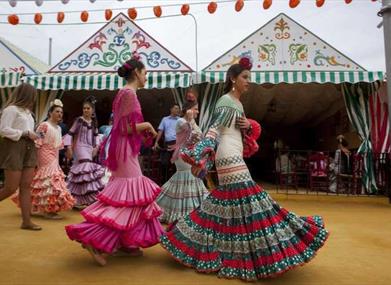 Alles ist von Musik erfüllt und erstrahlt in prächtigen Farben, bunt getupfte Kleider schmücken das Ambiente, Reiter führen inmitten der Menschenmenge ihre Pferde vor. Zahlreiche berauschende Aromen schaffen eine Atmosphäre, die die Sinne anregt: frittierter Fisch, Oliven, Paella, Schinken...und zur Krönung dieses gastronomischen Paradieses Manzanilla- und Fino-Wein. Nach einer bezaubernden Nacht, die sich erst in den frühen Morgenstunden dem Ende neigt, zieht es die Besucher zu einer heißen Schokolade mit Churros (ein typisches Spritzgebäck). Nach einigen wenigen Stunden Schlaf feiern sie schließlich bis zum Ende des Festes am folgenden weiter.