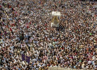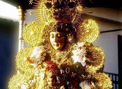 Um Mitternacht, in der Morgendämmerung am Montag von "Pentecostés", beginnt die Rezitation des Heiligen Rosenkranzes, und nach dem Umzug der Zünfte simpecados vor dem Schrein, den Anhängern angegriffen Schrein (die bekannte "den Zaun springen"), um die "Blanca Paloma", ist bekannt als der Virgen del Rocío, im Volksmund.