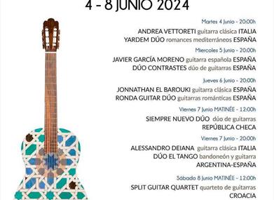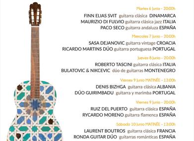 Das Festival bietet Matinee-Konzerte, Nachmittagskonzerte und Abendkonzerte. Darüber hinaus gibt es eine Ausstellung von Gitarrenbauern, eine Ausstellung über die Gitarre in der Kunst, Konferenzen, Meisterklassen und Vorträge. Alle Festivalaktivitäten finden im Kongresspalast im früheren "Kloster Santo Domingo" im Herzen der Altstadt von Ronda statt.
